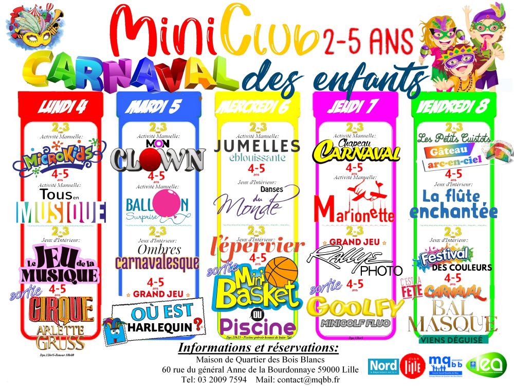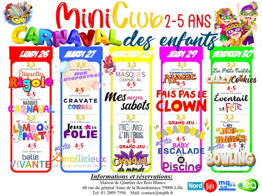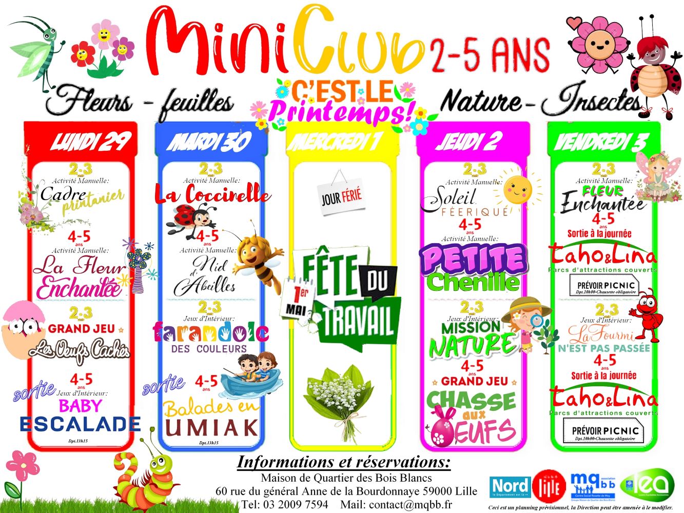 Accueil de loisirs « MINI CLUB 2-5 ans » (1)Dès 2 ans (s’il est scolarisé) et jusque 6 ans, votre enfant sera accueilli par une équipe d’animateurs pleine d’idées. Horaires :Deux types d’accueil sont proposés :