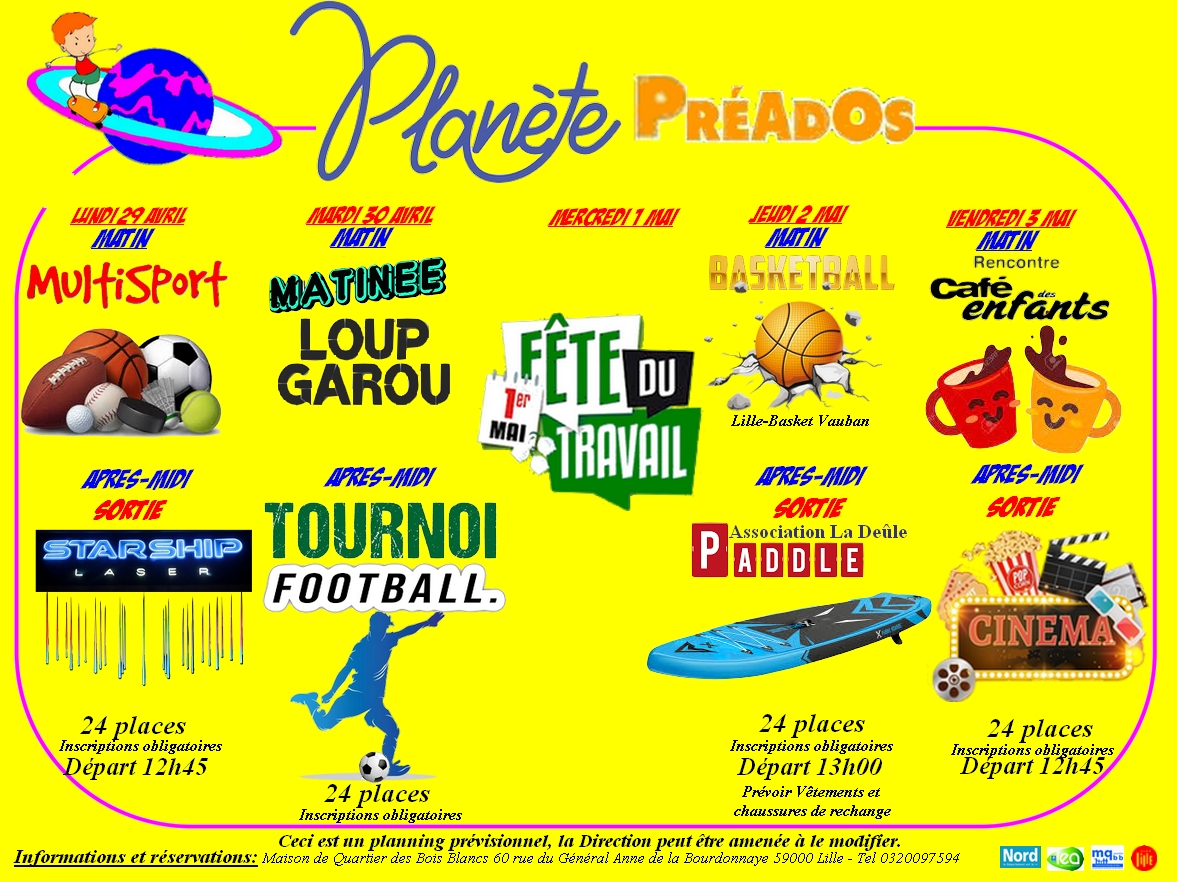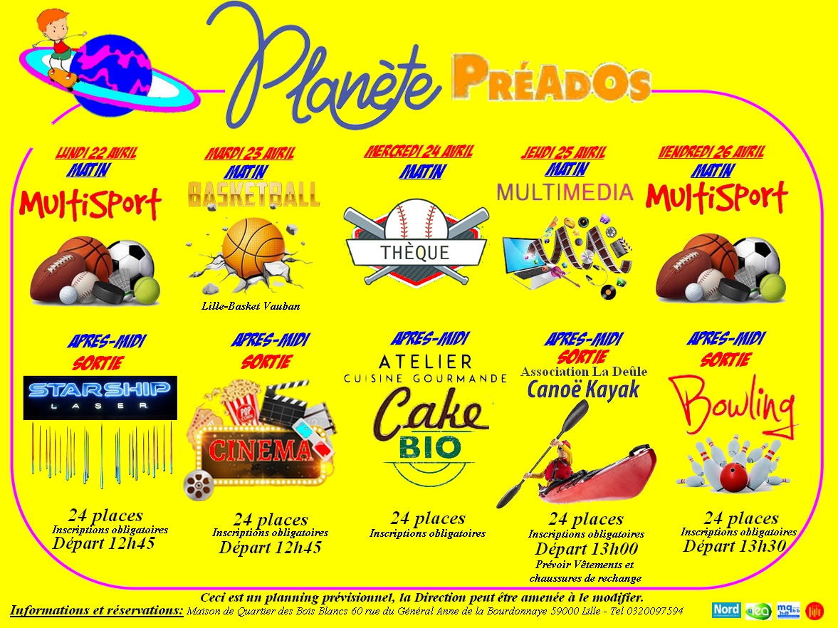 «Planète Preados» (10-13 ans)Votre enfant de 10 à 13 ans pourra y pratiquer toutes sortes d’activités